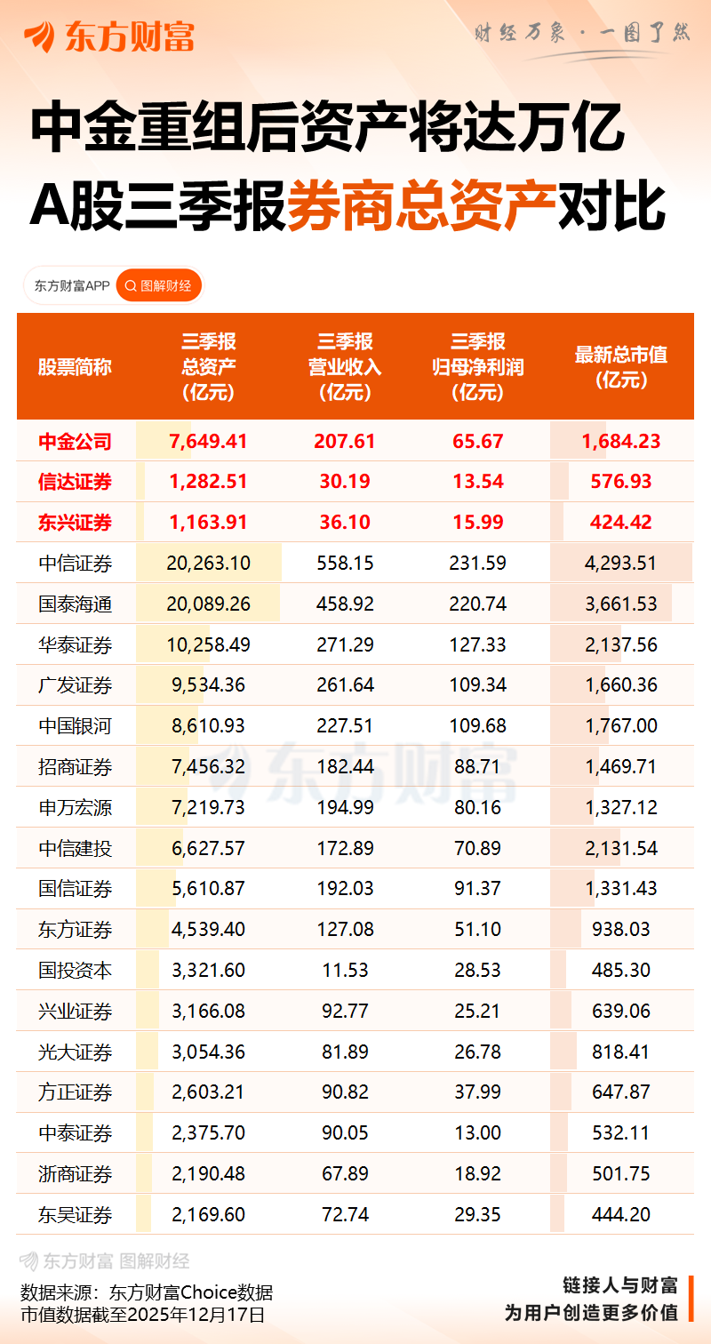 然而,規(guī)模躍升只是表象。有非銀分析師指出,此次合并的關(guān)鍵邏輯并非簡單的資產(chǎn)疊加,而是資源與能力的結(jié)構(gòu)性互補。在業(yè)內(nèi)人士看來,中金公司在資本運用、財富管理、跨境業(yè)務(wù)等方面的領(lǐng)先優(yōu)勢,將與東興、信達在區(qū)域網(wǎng)絡(luò)、特殊資產(chǎn)投行等領(lǐng)域的布局形成協(xié)同,強化競爭優(yōu)勢。
