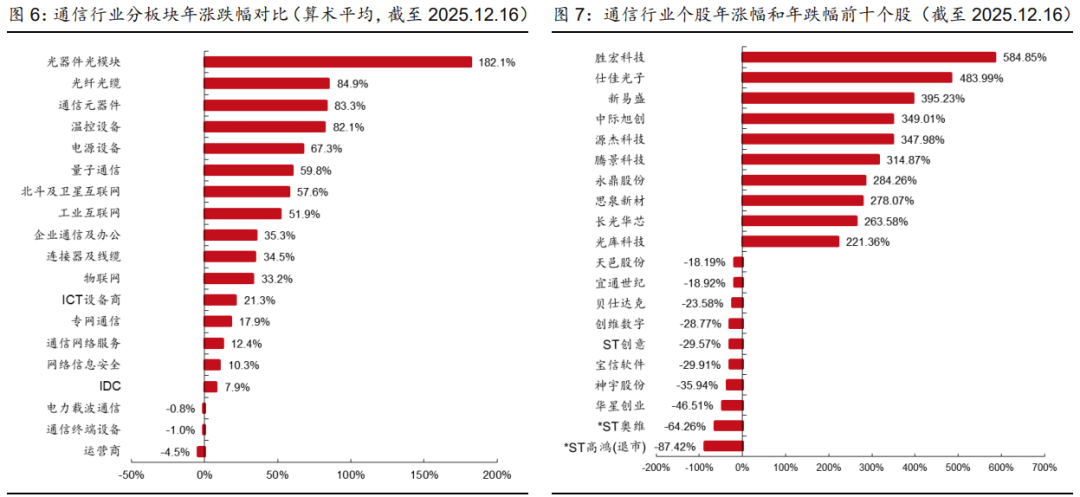 2025年,隨著全球人工智能行業(yè)快速發(fā)展帶動行業(yè)成長性加強(qiáng),人工智能關(guān)聯(lián)度較高的光通信子板塊當(dāng)前已成為通信行業(yè)中僅次于運(yùn)營商板塊的第二大板塊,且營收質(zhì)量逐季走高,AI強(qiáng)成長持續(xù)超預(yù)期。我們認(rèn)為市場對于通信行業(yè)的估值仍舊相對保守,未完全體現(xiàn)行業(yè)的高成長性,通信長牛有望持續(xù)。