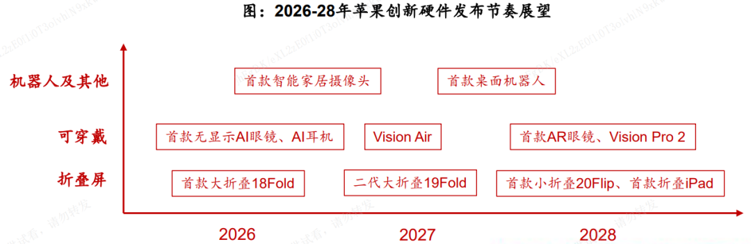 蘋果2026年Q1有望推出升級版Siri,新款 Siri將依賴谷歌Gemini模型的定制版本,重點(diǎn)提升語義理解、多輪對話及實(shí)時(shí)信息檢索能力,支持多步驟任務(wù)。Air/Pro/ProMax/折疊機(jī)預(yù)計(jì)于26年秋季發(fā)布,標(biāo)準(zhǔn)款發(fā)布或延遲至27年春季以平滑新品淡旺季;首款折疊屏iPhone 18 Fold(左右折)有望于2026年秋季推出。2026-28年蘋果有望迎來創(chuàng)新周期。