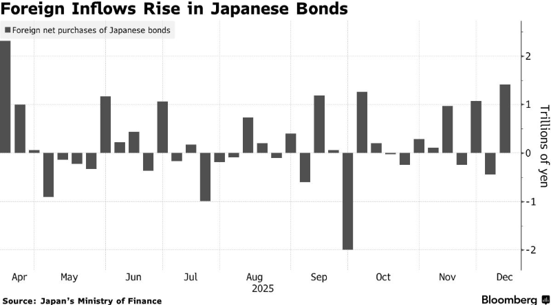 受數(shù)十年高位的收益率以及通過(guò)日元對(duì)沖獲得的額外回報(bào)吸引,海外資金有望在今年創(chuàng)下至少自2005年以來(lái)日本國(guó)債的最大年度購(gòu)買規(guī)模。隨著日本央行通過(guò)量化緊縮逐步退出市場(chǎng),外國(guó)投資者正日益填補(bǔ)這一空缺——這一轉(zhuǎn)變可能給曾經(jīng)平靜的市場(chǎng)帶來(lái)更多波動(dòng)。