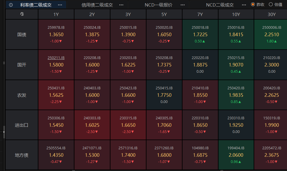 截至今日17:30,利率市場(chǎng)收益率多數(shù)下行,10Y國(guó)債下行1.5bp至1.84%,30Y國(guó)債下行4.2bp至2.24%。信用市場(chǎng)收益率多數(shù)下行,2Y期AAA信用債下行0.48bp至1.78%。債市早盤上漲。中國(guó)央行開(kāi)展468億元7天期逆回購(gòu)操作,凈回籠1430億元。資金面中性,資金情緒指數(shù)50,資金價(jià)格較昨日震蕩,DR001在1.25%附近,DR007在1.48%附近。