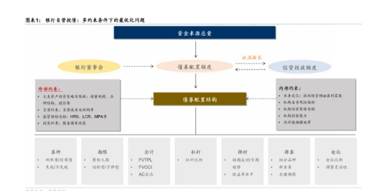 銀行投債行為本質(zhì)是多重約束條件下的最優(yōu)化問(wèn)題,在兼顧穩(wěn)定、較高收益目標(biāo)的同時(shí),也面臨更為嚴(yán)苛的約束條件。近日市場(chǎng)頗為關(guān)注的“銀行賬簿利率風(fēng)險(xiǎn)”或“ΔEVE”便是其中之一,其本質(zhì)是對(duì)銀行抵御沖擊能力的衡量。近兩年大行在一級(jí)市場(chǎng)承接不少長(zhǎng)久期政府債,資產(chǎn)久期被動(dòng)拉長(zhǎng),而負(fù)債端久期因存款活期化等趨于縮短,這一錯(cuò)配導(dǎo)致2024年多數(shù)大行的“ΔEVE”比例逼近15%的“紅線”。考慮到今年、明年財(cái)政基調(diào)更為積極且前置,指標(biāo)壓力短期難解,疊加銀行賬戶擺布?jí)毫ι?jí),其對(duì)長(zhǎng)久期的接受度弱化或難免。期間若指標(biāo)限制放寬、特別國(guó)債注資、浮息債擴(kuò)容等有望“解近渴”,只是空間不宜太樂(lè)觀,銀行對(duì)長(zhǎng)端利率債的承接力仍存遠(yuǎn)憂。