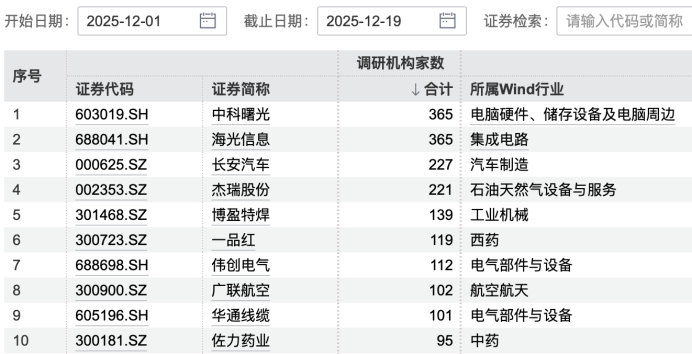 12月以來,超600家公司獲證券公司、基金公司、保險及保險資管公司等機構調研。多家公司獲調研次數(shù)超百次。